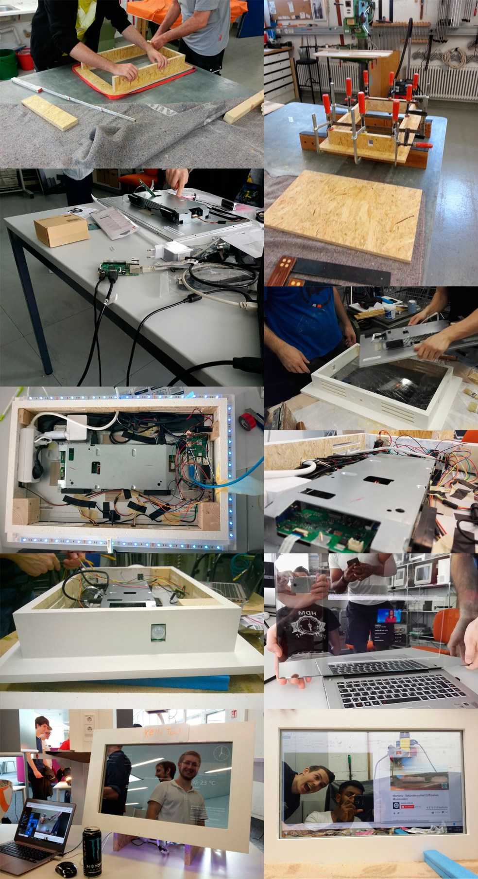 Wir entschlossen uns, den Spiegel komplett selbst zu erstellen, angefangen vom Rahmen, der selbst geschreinert werden sollte, über die Elektronik sowie der Anwendung, die dem Spiegel schließlich Leben einhauchen sollte