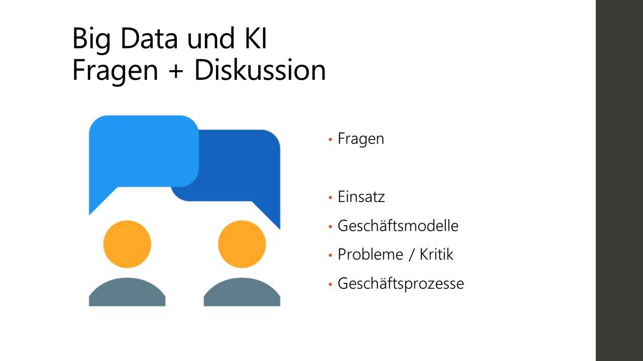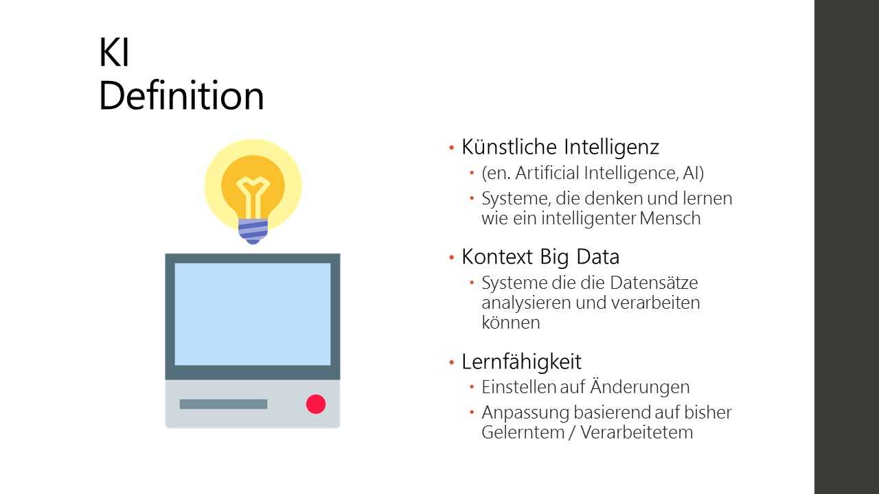 In einer Vorlesung über IT-Management beschäftigte ich mit dem Thema Big Data und KI. Neben einer schriftlichen Ausarbeitung sollte dabei auch eine kurze Präsentation des Themas abgehalten werden.