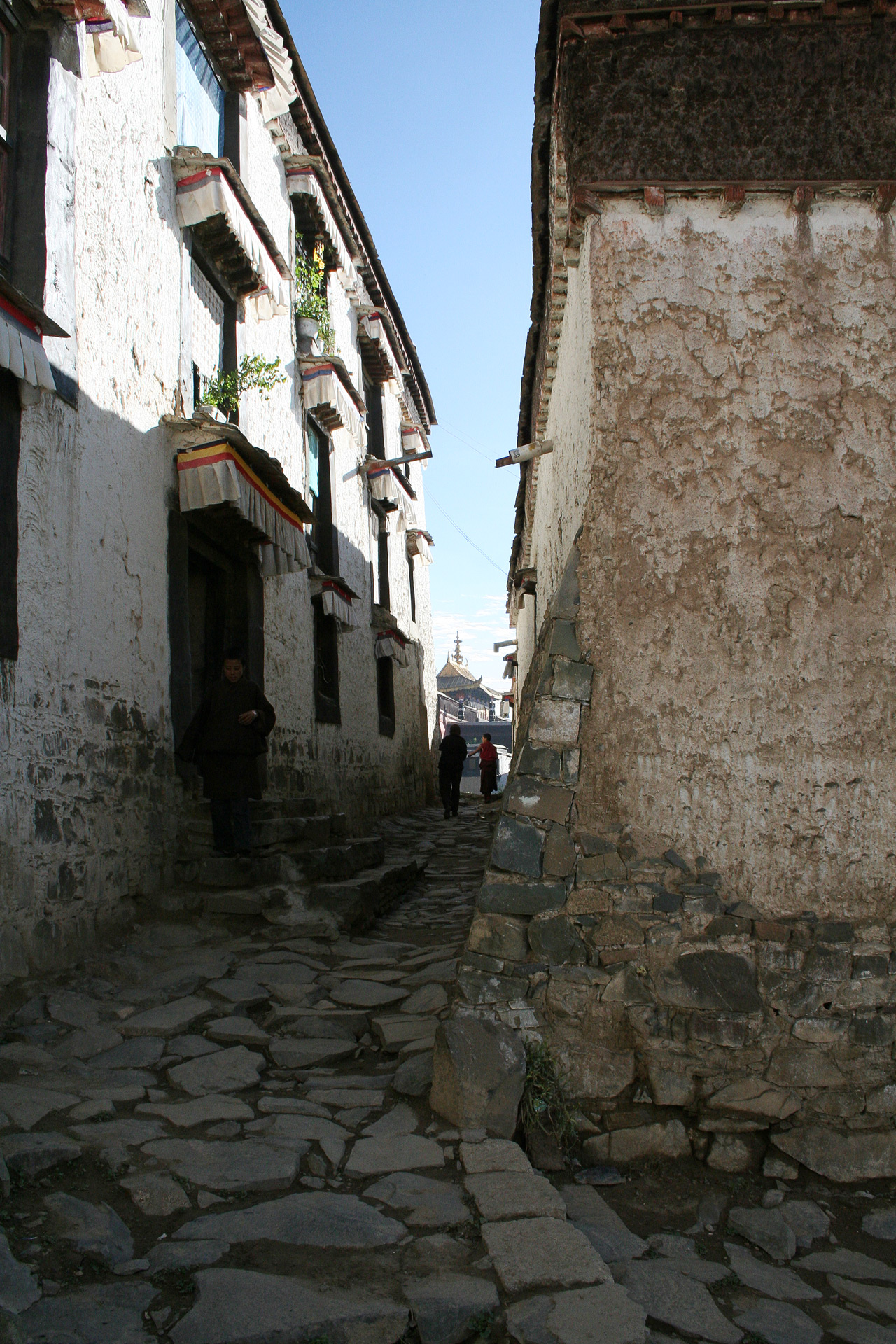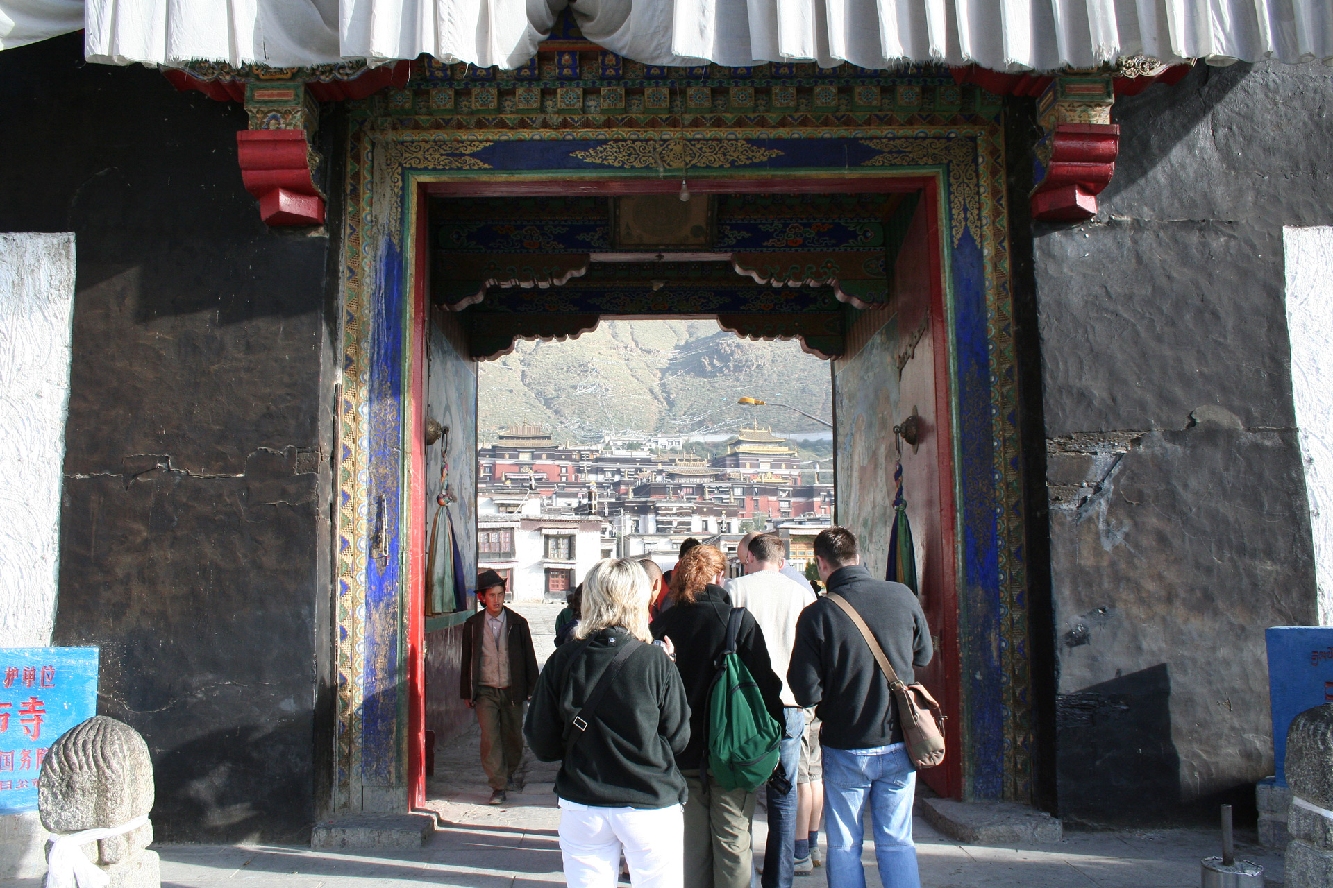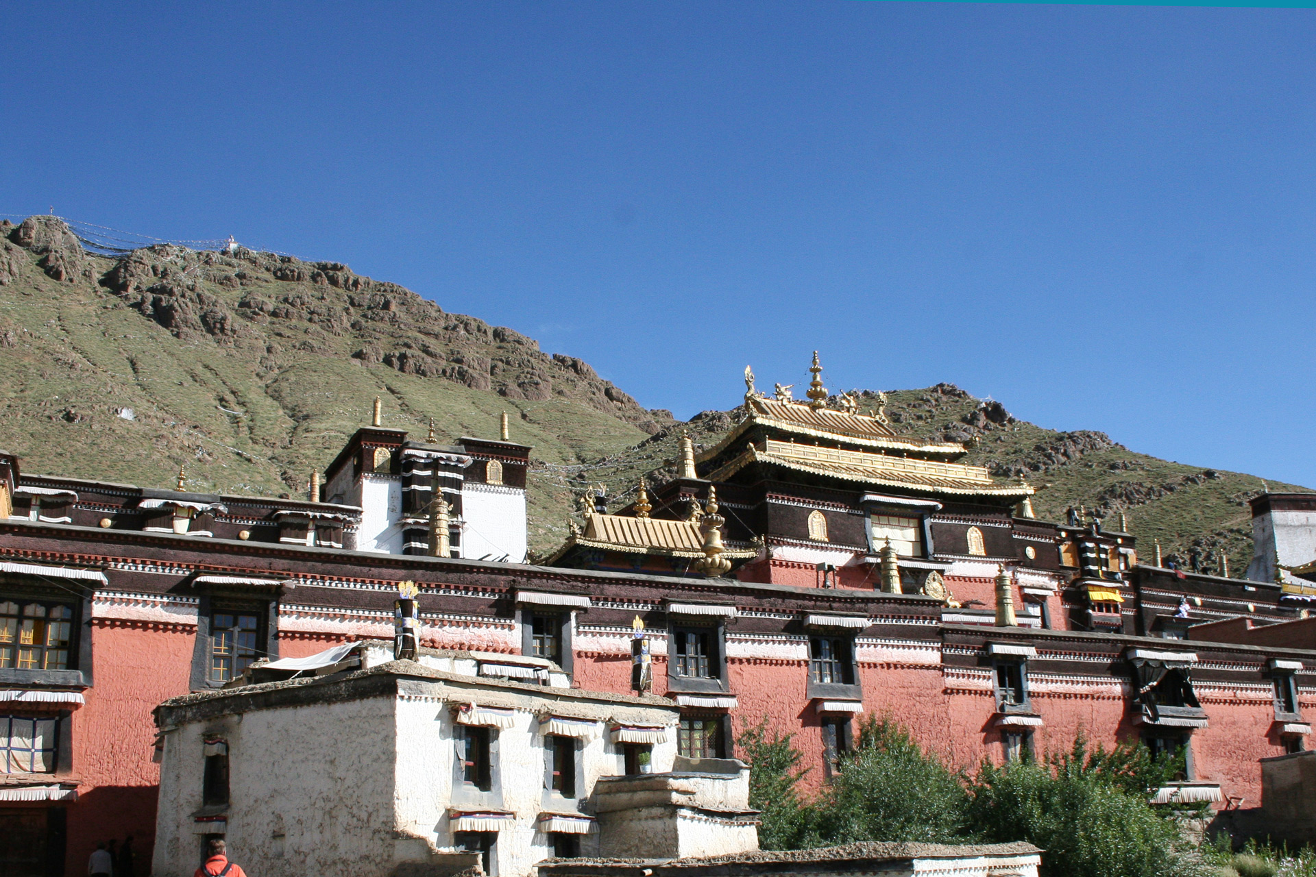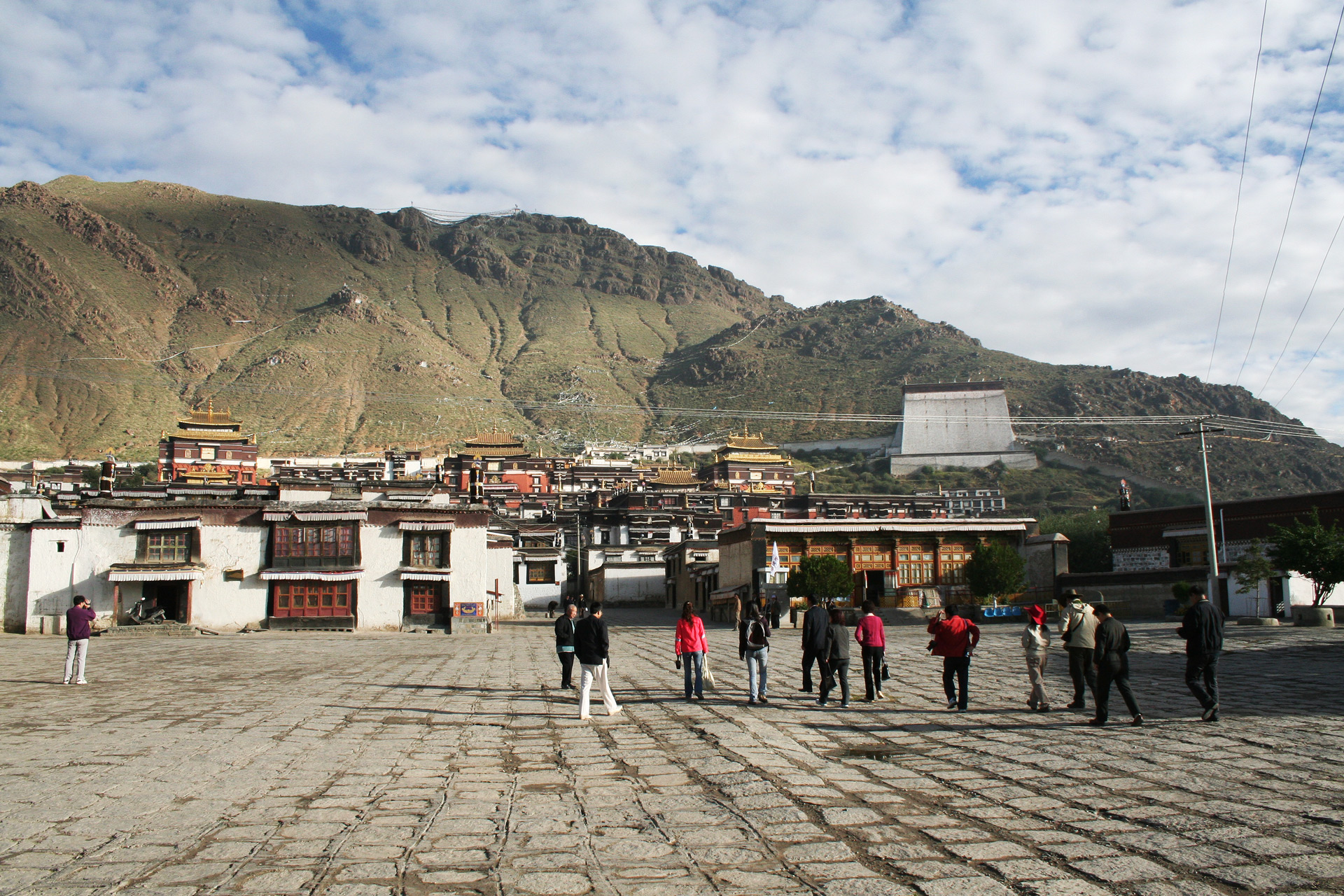 Blick auf die Anlage, im Hintergrund sind die Tempel und die Thangka Mauer zu stehen