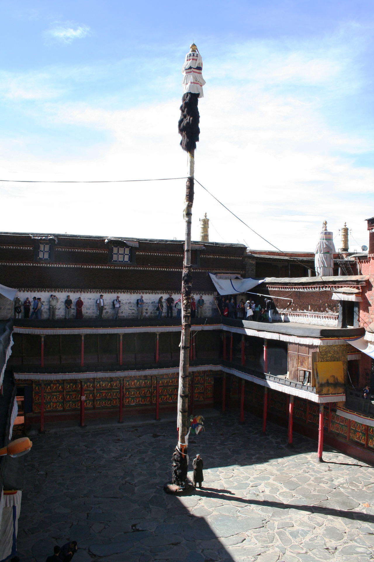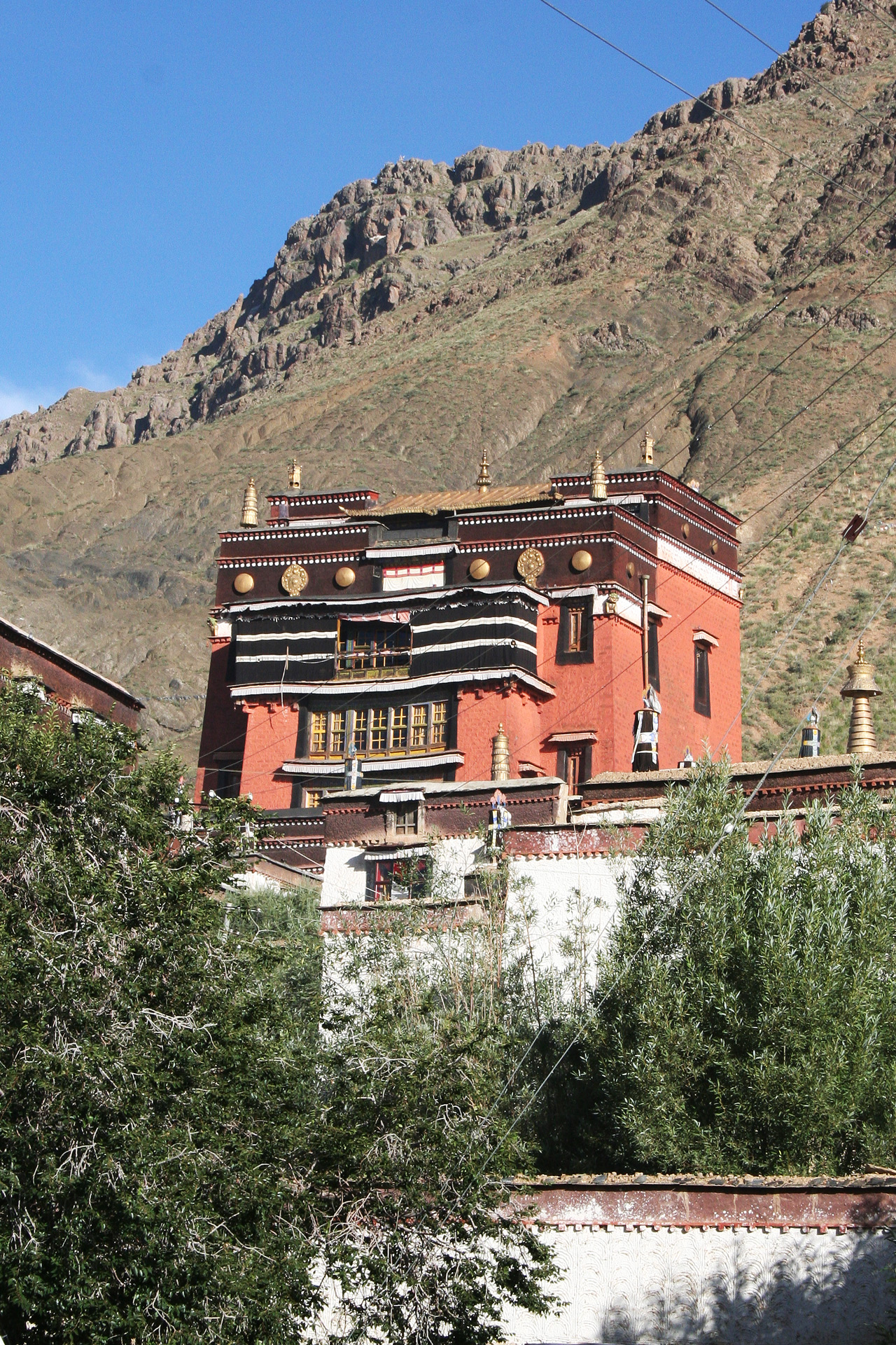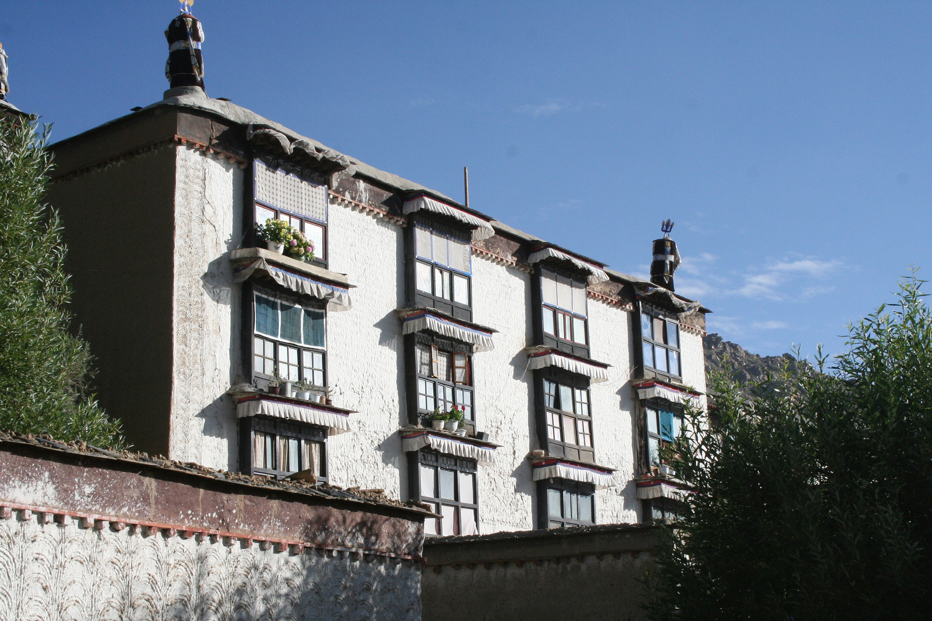 Die Thangka Mauer der Anlage, an ihr werden zu Festen große Bilder aufgehängt