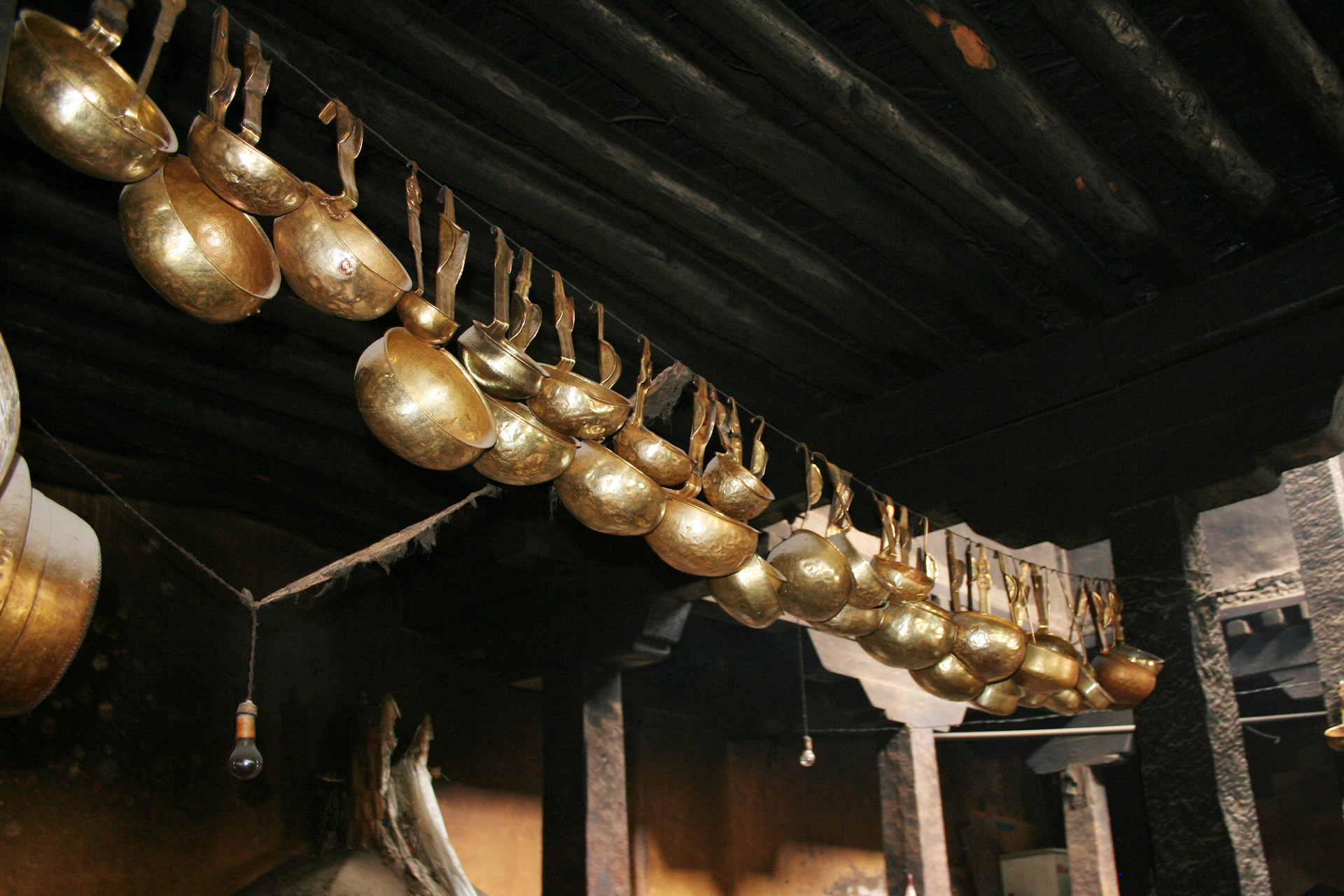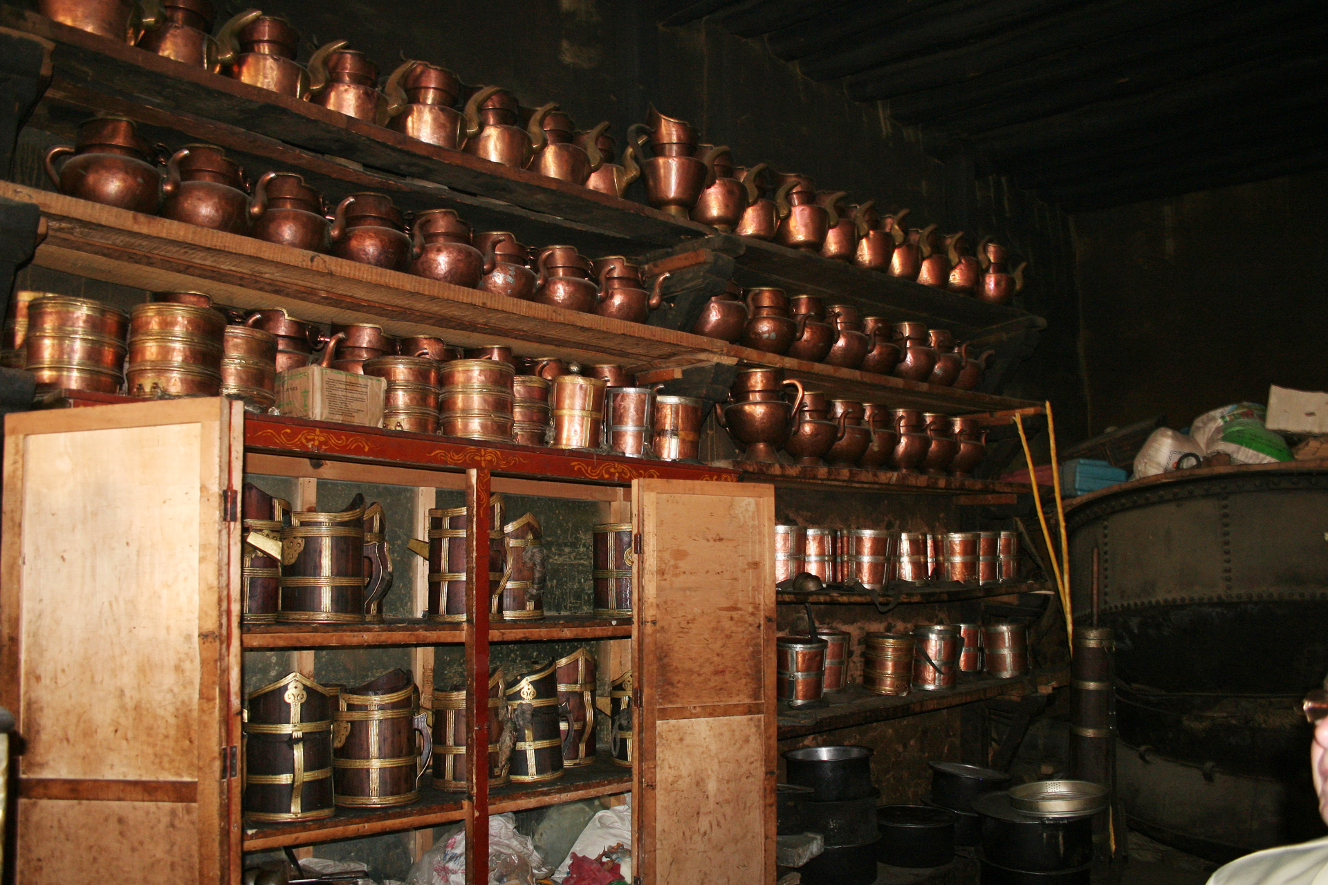 ... in dessen Küche es jede Menge Krüge, Eimer, Gefäße ...