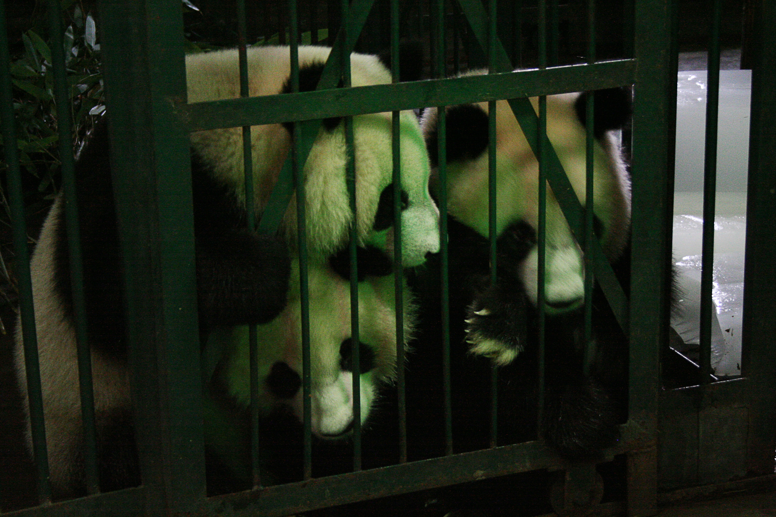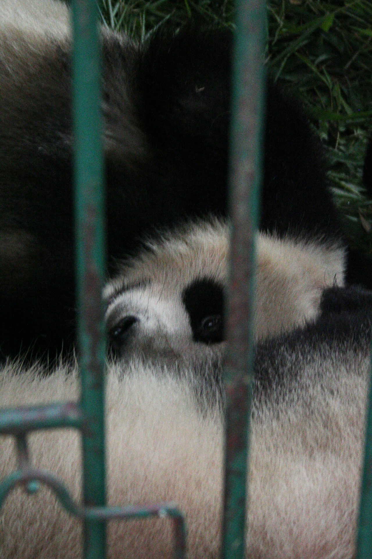 Die Pandabären waren alle in ihren Käfigen, da es an diesem Tag sehr warm und schwül war