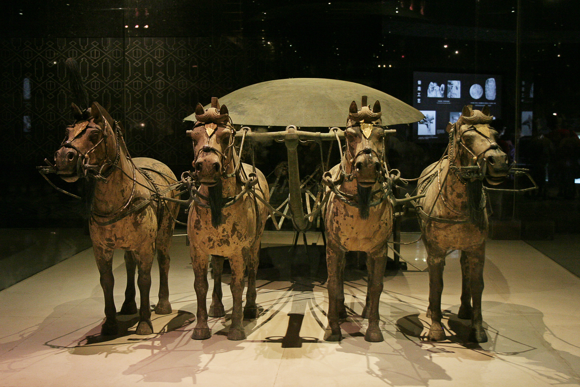 In einem Teil des Mausoleums wurden auch aus Bronze gefertigte Figuren gefunden, wie diesen 'bequemen Wagen'