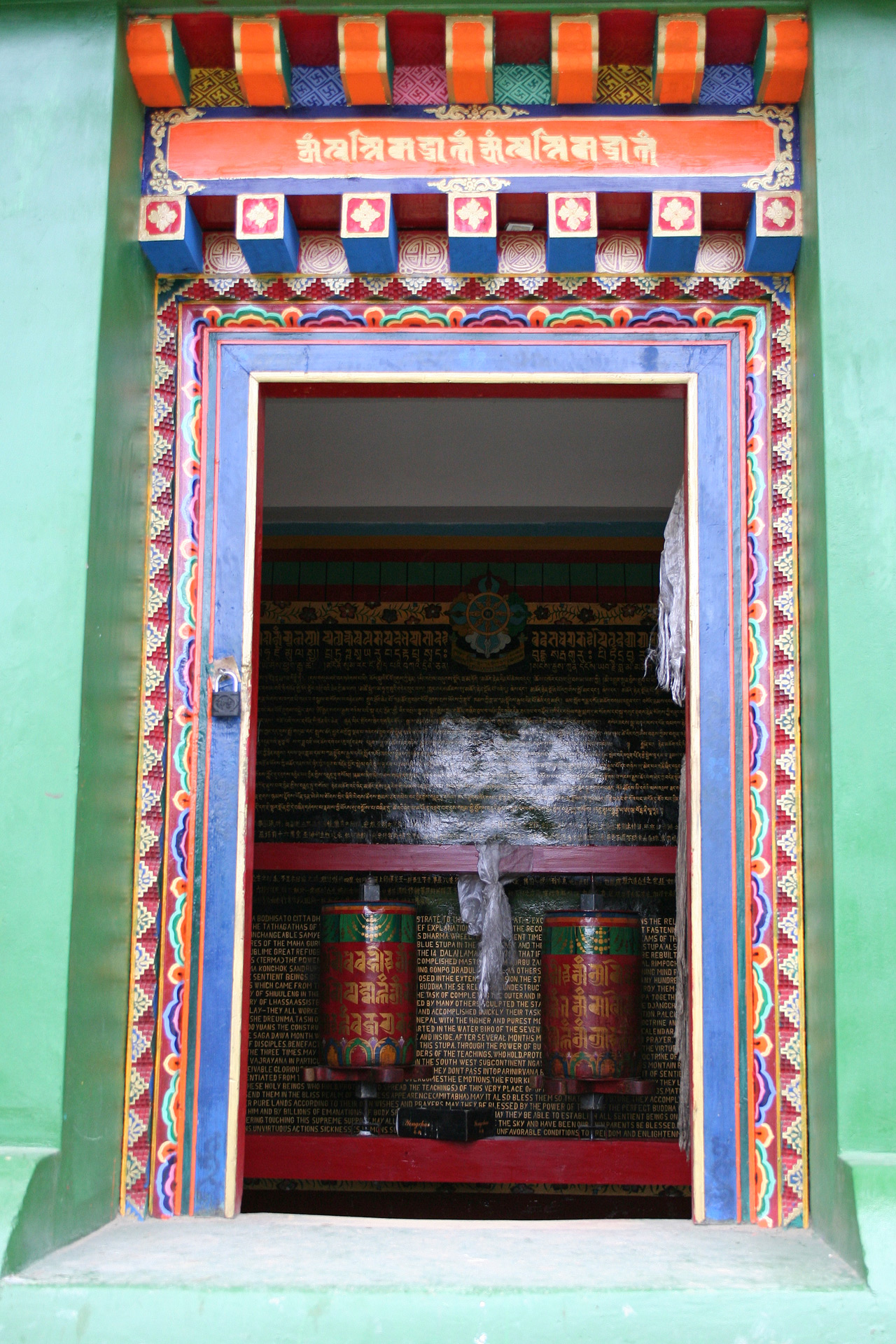 Im Innern der Stupa befinden sich Gebetsmühlen