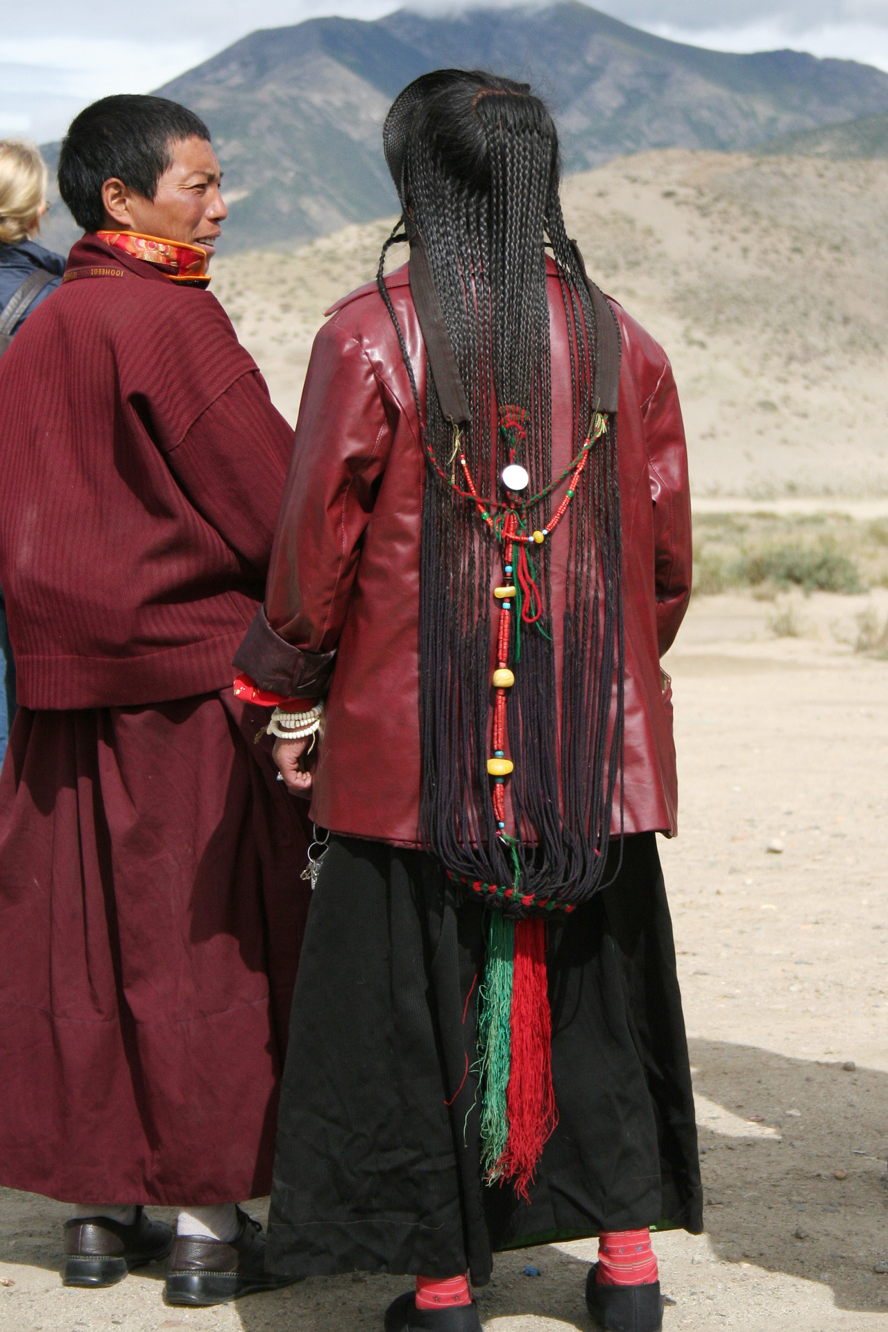 Traditionelle tibetische Frisur mit Zöpfen